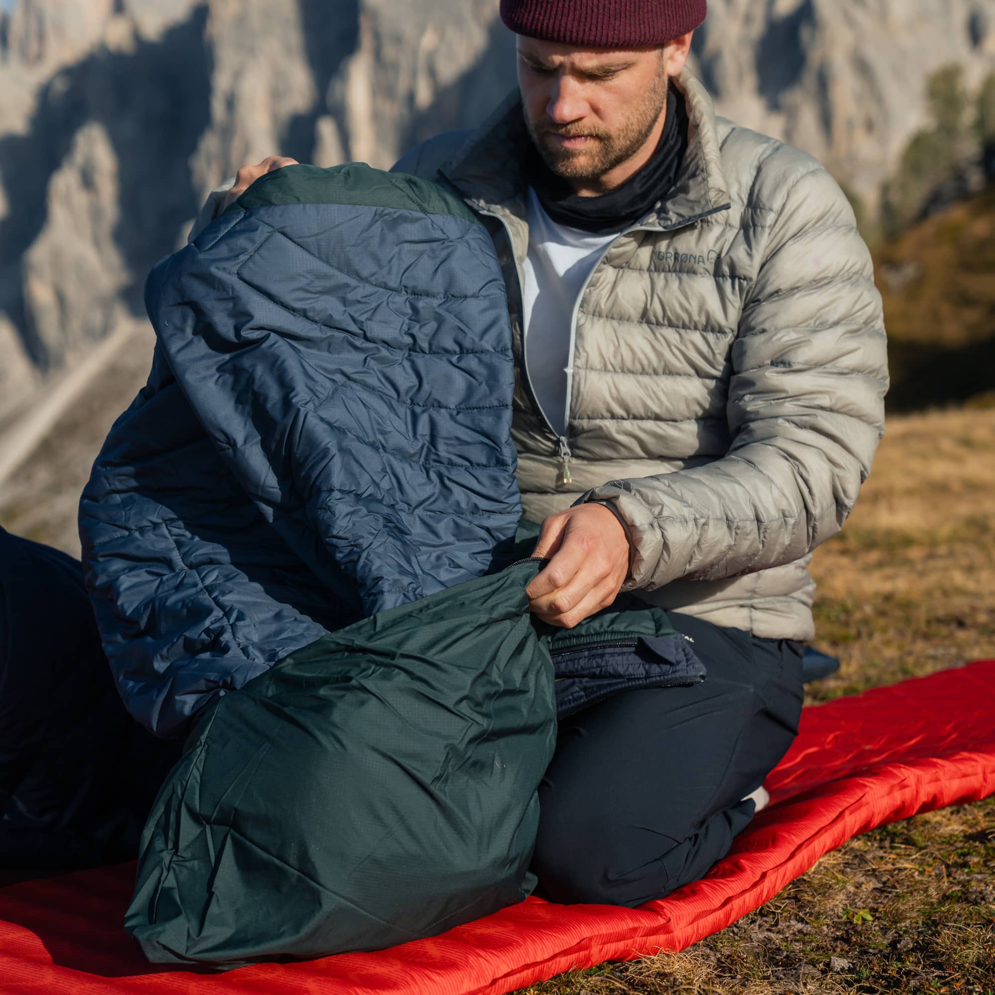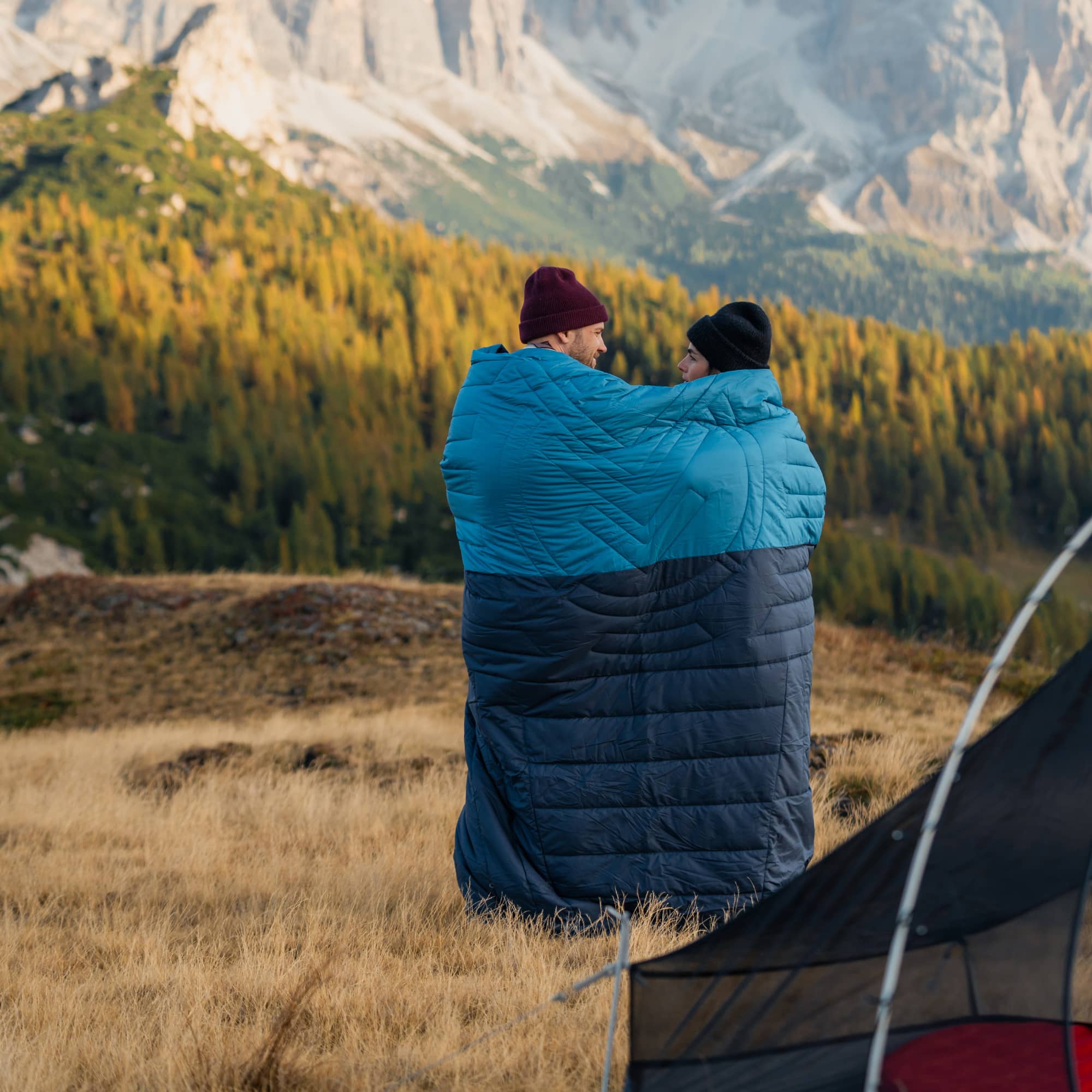 Verbinde zwei Slumber Zip Sacks für Wärme im Doppelpack. -