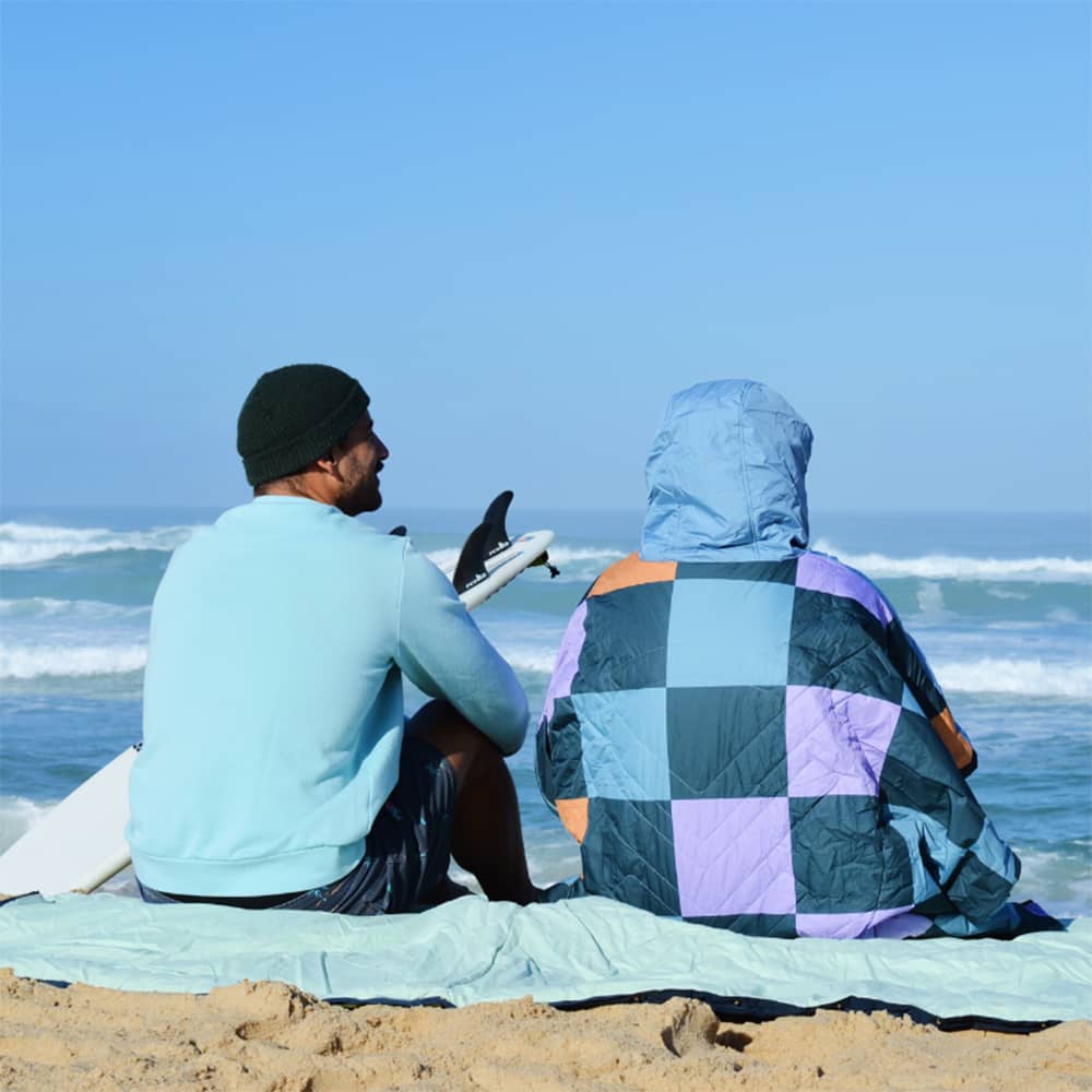 Die Trooper lässt sich mühelos verwandeln. Verwandle ihn in eine klassische Campingdecke zum Faulenzen oder Picknicken. Durch Druckknöpfe am Rand lässt sich die Decke in einen praktischen Poncho mit Kapuze verwandeln, der dich warm und trocken hält, während du die Hände frei hast und dich entspannt umziehen kannst. -